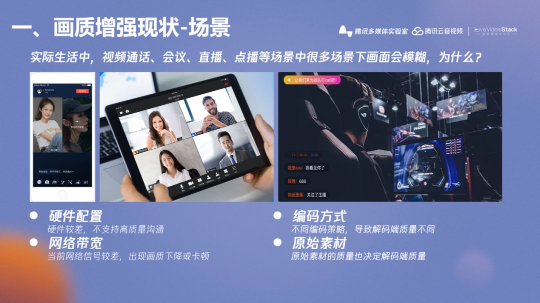 导致画面不如预期的因素有很多,包括硬件条件、网络带宽、编码方式、原始素材等,在这样受限的场景下,如何提升用户体验的主观感受呢?