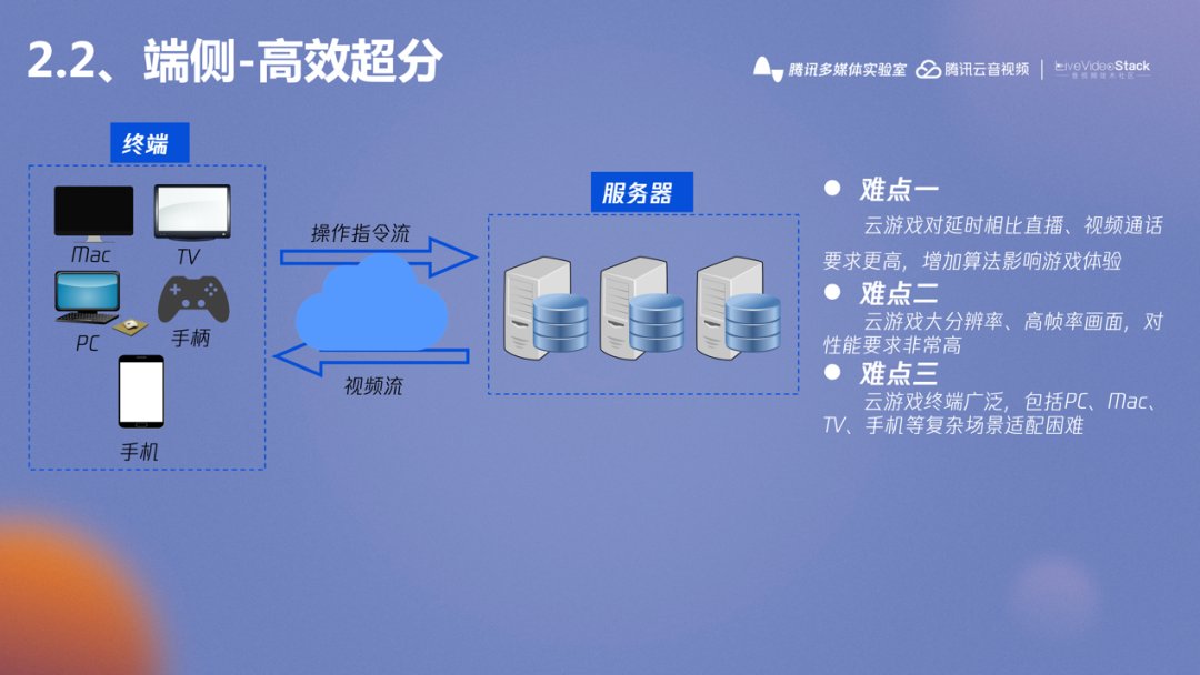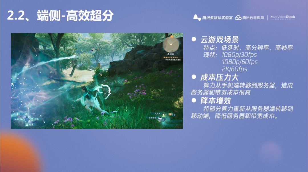 接下来介绍腾讯多媒体实验室在云游戏中端侧超分的研究,端侧超分也会应用在腾讯视频中以达到降低成本的目的,端侧超分也是正在研究中的内容,因此提出来和大家一起讨论学习。