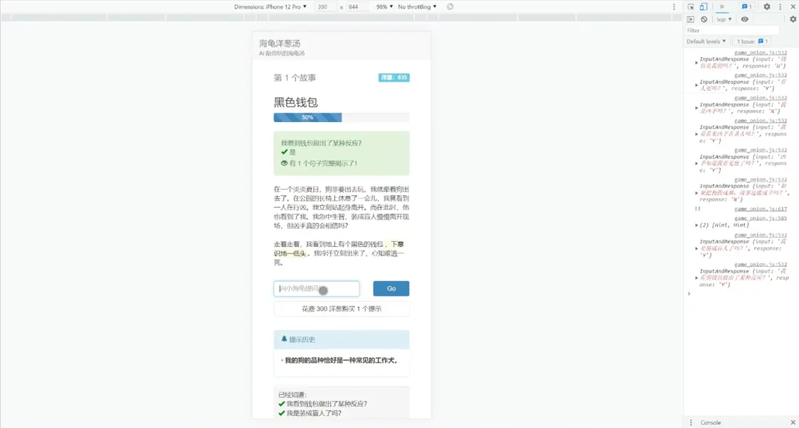 线上赛道的真格基金专项奖颁给了“海龟洋葱汤”。盏灯工作室利用 GPT 的对话能力,构建“海龟汤”故事知识库,让 AI 担当主持人,大幅度提升玩家提问自由度,制作了一个人也能玩的“海龟汤”对话解谜游戏,最 大程度降低了游戏游玩门槛和落地成本,提供了一套可商业化的技术方案。