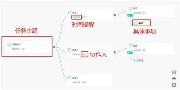 拆解维度可以学习WBS理论,利用飞项工具中的[脉络图]功能,把要完成的任务拆解出来。