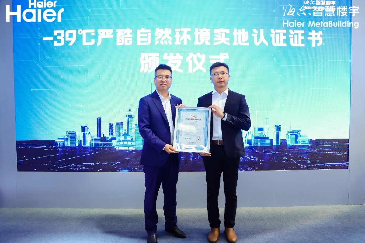 现场,鉴于该方案在漠河用户家中的实践成果,中国电器院CVC威凯再次为海尔智慧楼宇颁发“严酷自然环境实地认证证书”。此前,该方案在中国气温最 低县漠河的挑战中,实现了室外温度-39℃的情况下,室内温度达18℃,并保持了有效、稳定运转,获得用户和行业的一致认可。