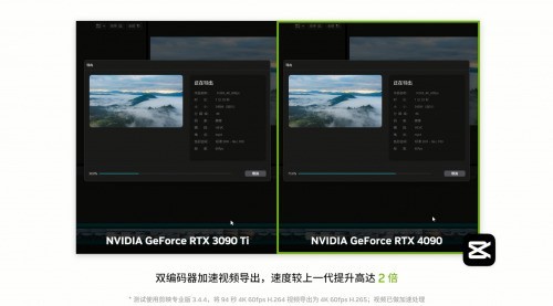 值得一提的是,在中国备受欢迎的视频件及应用剪映专业版现已全面支持NVIDIA GeForce RTX 40系列显卡。AV1双编码器进一步提升视频导出速度至高达2倍,为国内视频创作者的创作效率带来新的飞跃。