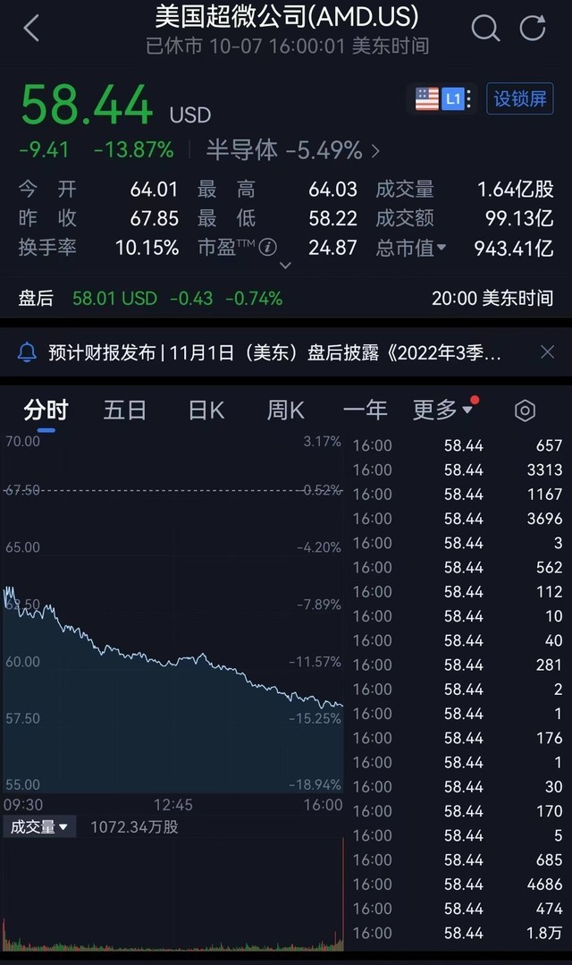 本周五,“黑色星期五”真正在美国股市上演了,苹果股价下跌了3.67%,市值则蒸发858.19亿美元,约合人民币6106.88亿,目前的市值为2.25万亿美元。除此之外,美国芯片巨头AMD的股价也一夜暴跌14%,目前股价为58.44美元,目前市值为943.41亿美元。