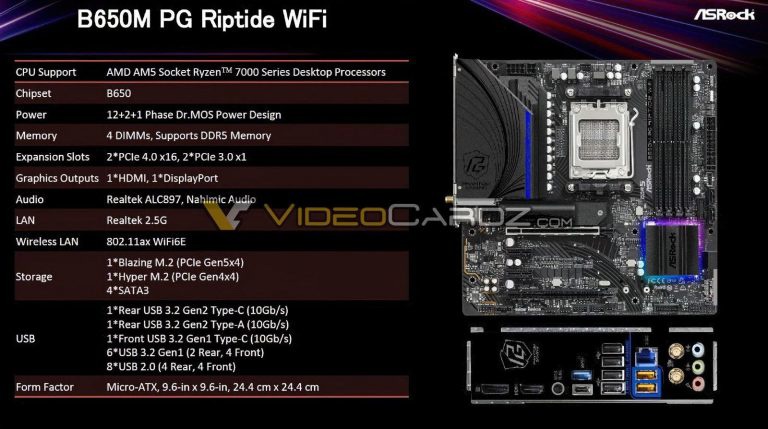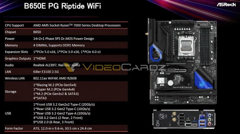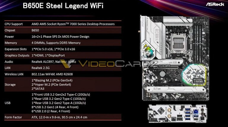 根据外媒 VideoCardz 爆料,华擎至少有 7 款 AMD B650 主板,覆盖 E-ATX、ATX、Micro-ATX 和 Mini-ITX 板型,具体规格见下图: