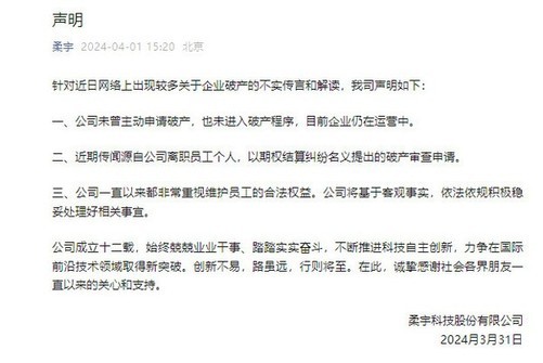 近日,柔宇科技官方发布了声明,回应了网上关于公司破产的传言。柔宇科技表示他们从未主动申请破产,也未进入破产程序,并且企业仍在运营中。这些传言源自公司离职员工个人以期权结算纠纷名义提出的破产审查申请。柔宇一直重视维护员工的合法权益,将依法依规处理好相关事宜。