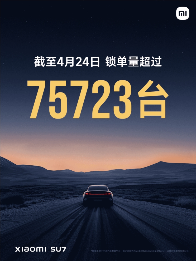 4 月 25 日,小米汽车在 2024 北京国际车展上召开发布会,雷军宣布小米SU7 正式发布 28 天后锁单量7 5723 台,已交付5781 台,创下了业内新品牌首款车型上市首月的交付量新纪录。