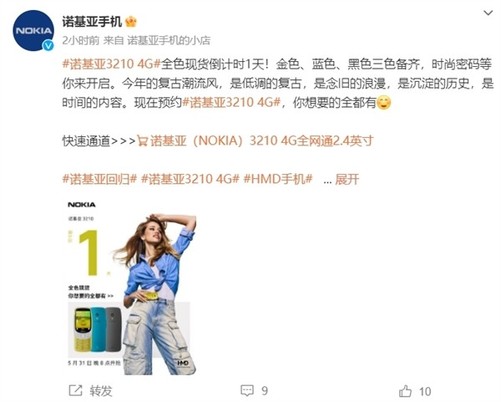 经典神机诺基亚3210 4G正式补货 上市仅一周就被抢空