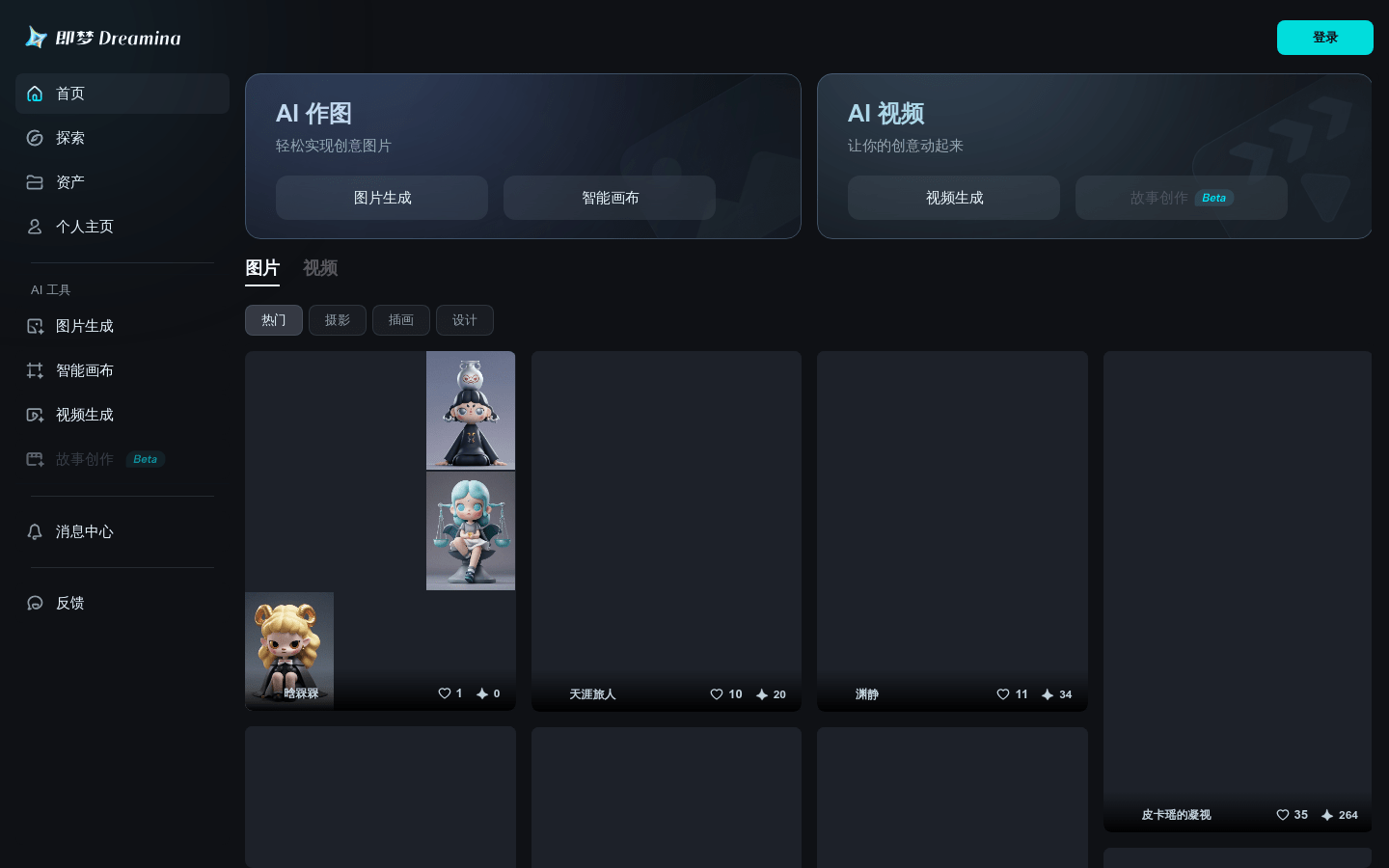 即梦Dreamina通过先进的AI技术,简化了设计流程。用户只需上传或选择素材,如图片、文字等,然后利用智能画布进行编辑和创作。平台提供了丰富的功能,如图片和视频生成、故事创作等,用户可以根据自己的需求选择合适的功能进行创作。